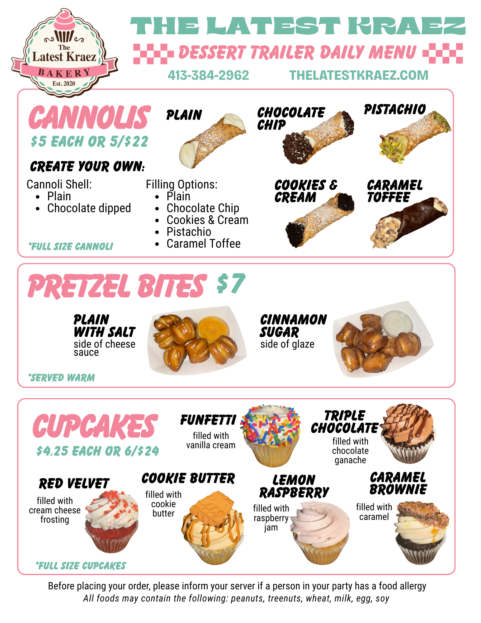 Please note: this menu is for the dessert trailer only, not what we have in store. Some items may already be sold out.